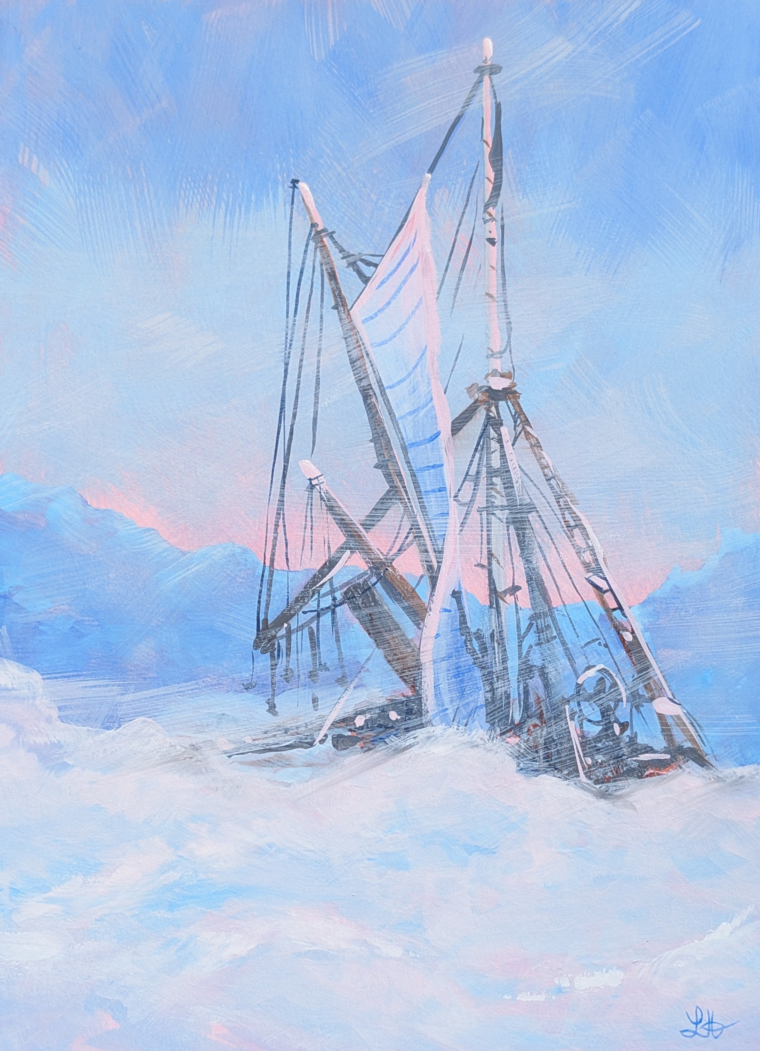 Next, I wanted to try to create a more muted version of this scene. I could really feel the temperature drop when I stood in the shadows at sunset, so I wanted to try and capture that feeling in my next painting.