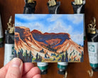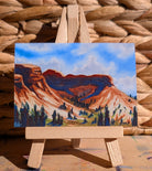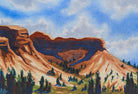 Clouds float above the canyon and buttes, casting sapphire shadows on the rock formations. Dark shrubs and trees reach for the sun in the scorching summer. Don't miss out on adding this classical watercolor gem to your collection!