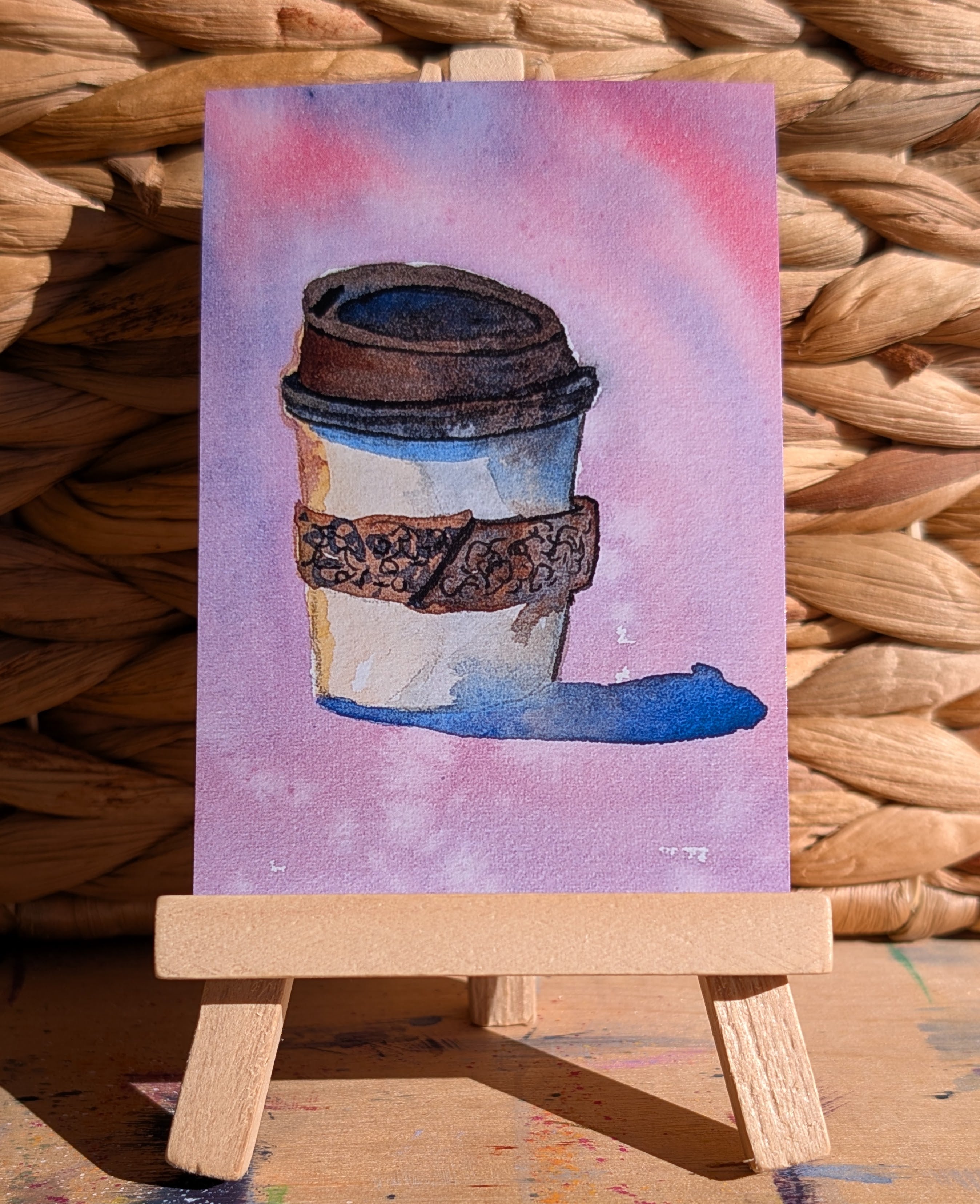The best way to greet a Saturday morning is with a latte. I love the sound of the little bells tinkling as I enter the coffee shop, the murmur of the people in deep conversation in comfy armchairs surrounded by books, and the smell of the coffee shop as I browse the seasonal menu. That first sip from the hot cup is absolute heaven! After a wonderful summer Saturday morning, I painted this still life of the coffee I was still working on because I was just so inspired. If you love lattes as much as I do, I bet you'll love this little painting, too. This is a print of the original, and I worked with a professional printer to achieve the depth of color and precision to create this next gem to add to your collection. Perfect for fine art collectors and coffee enthusiasts.