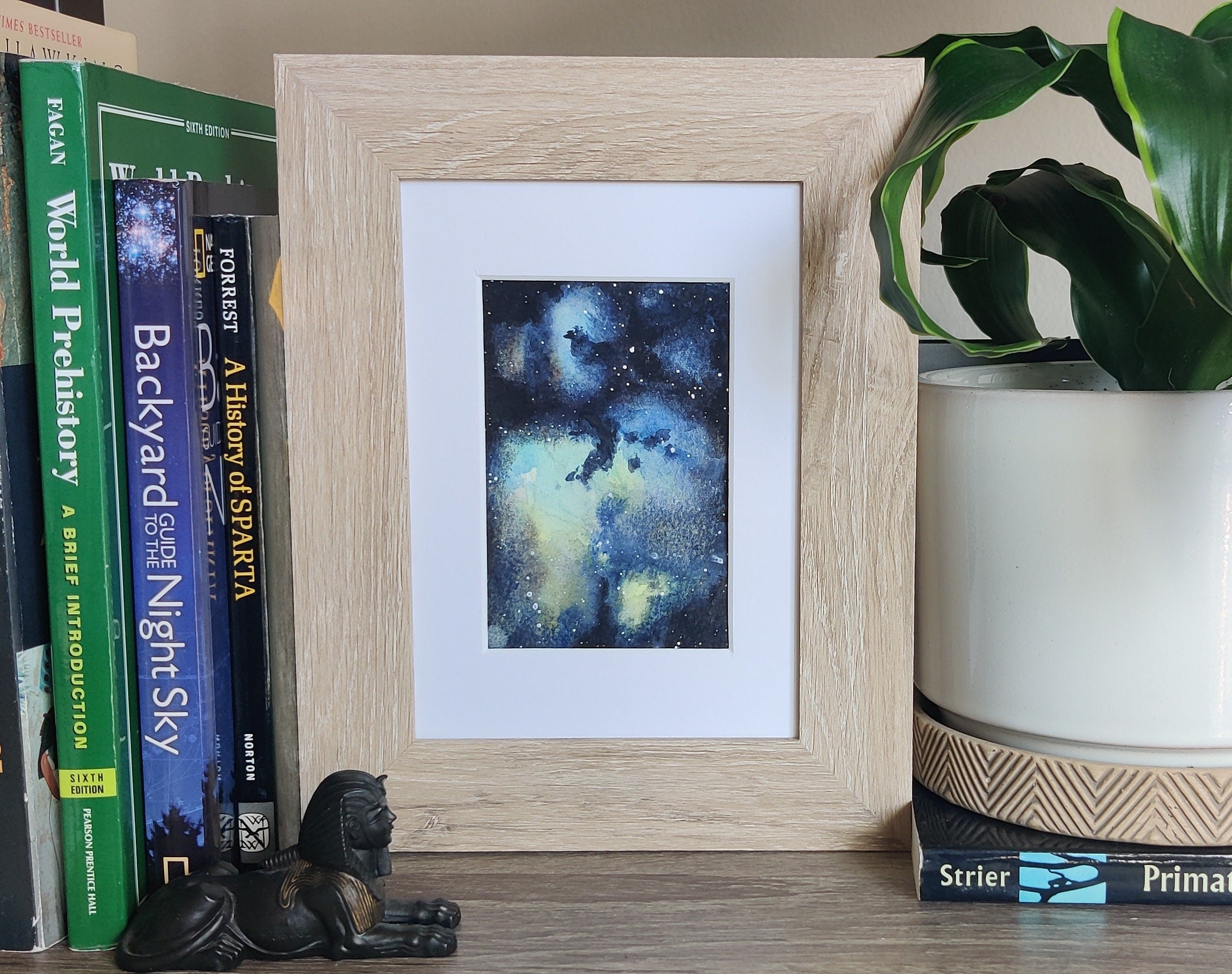 Celestial bodies swirl above us in the vast darkness of the universe. Customize your space with a watercolor interpretation of the beauty of galaxies beyond our reach. Inspired by the night sky.
