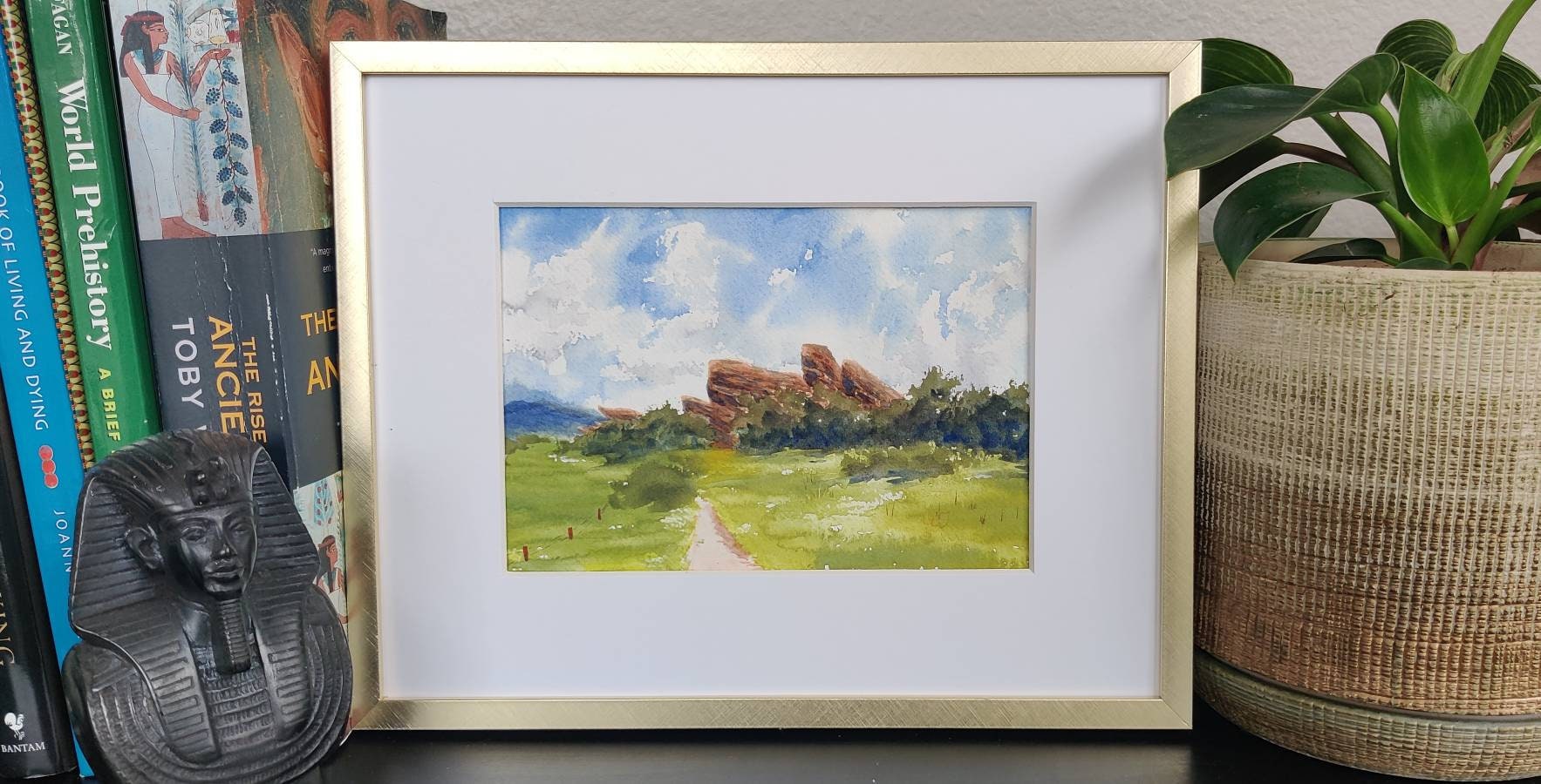 Clouds float over the folds of the Colorado red rocks. Crickets sing from deep within the cool shadows of the brush surrounding the sandstone behemoth. Inspired by an afternoon summer hike near Red Rocks.