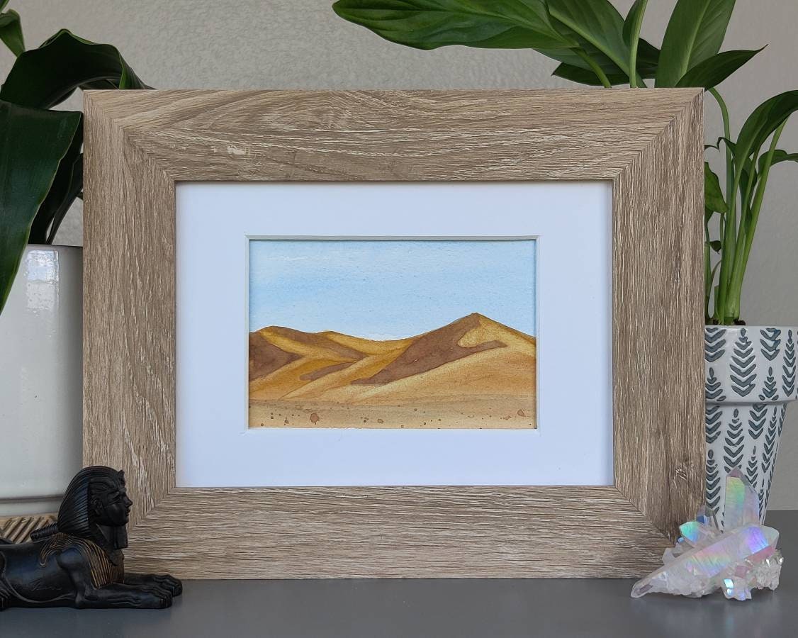 Sand dunes shift in the afternoon sun. Cool shadows and light ridges contrast in abstract shapes. Inspired by vast deserts.