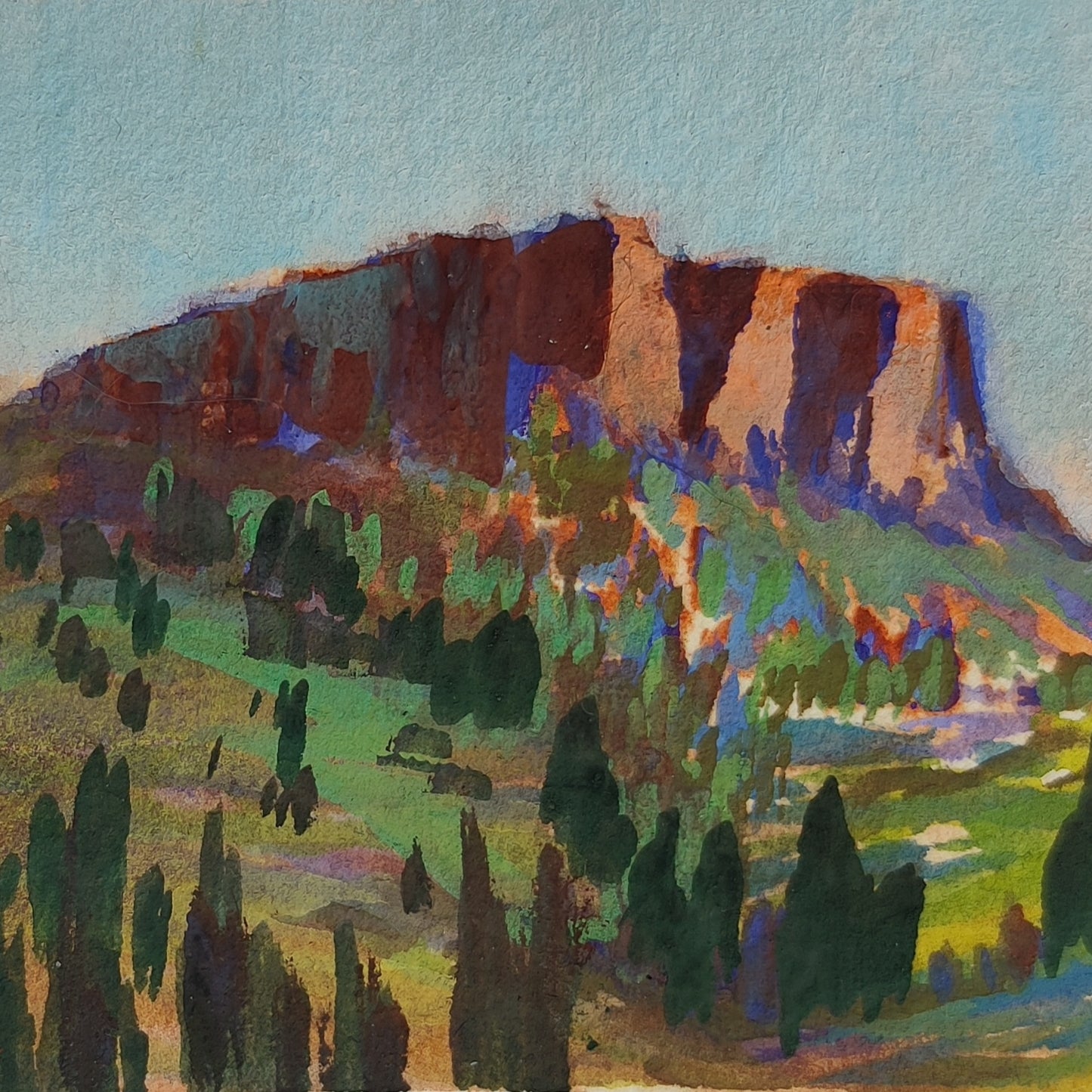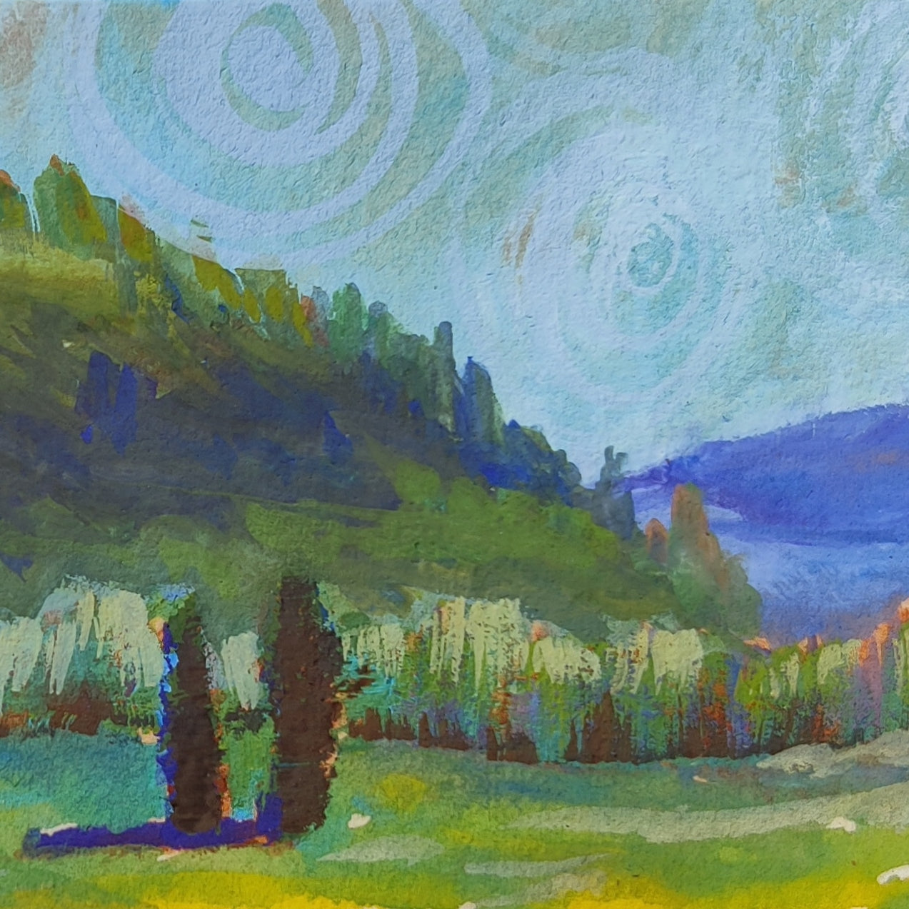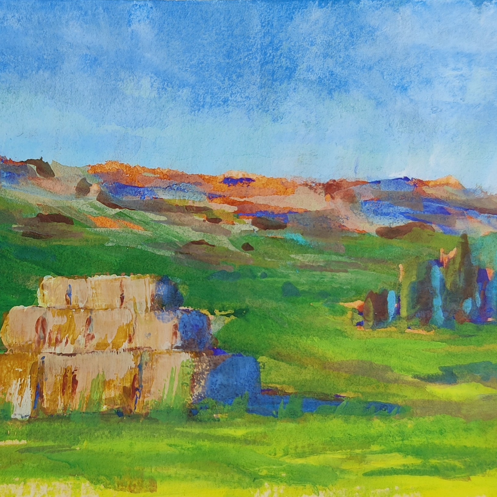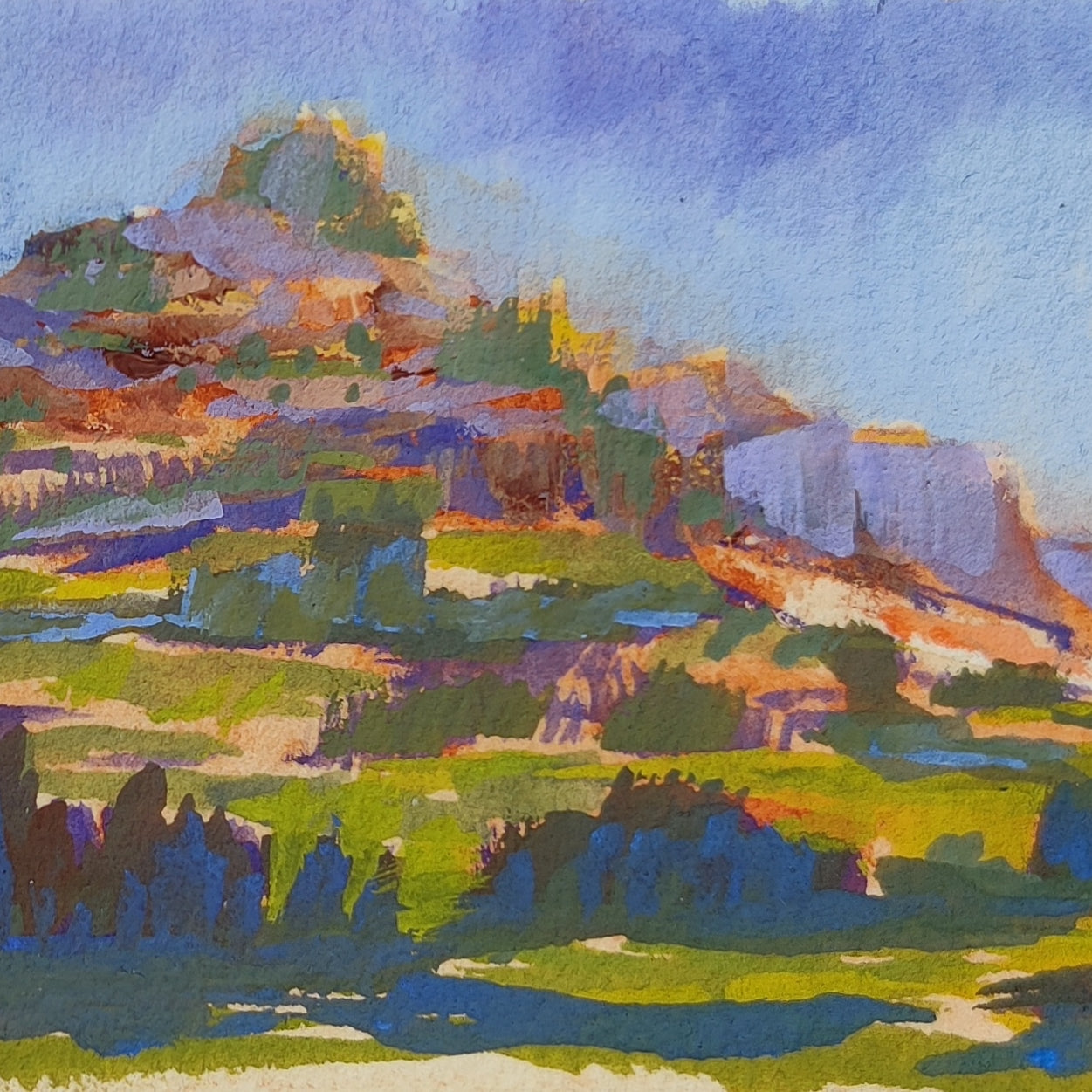 Next, I wanted to try to create a more muted version of this scene. I could really feel the temperature drop when I stood in the shadows at sunset, so I wanted to try and capture that feeling in my next painting.
