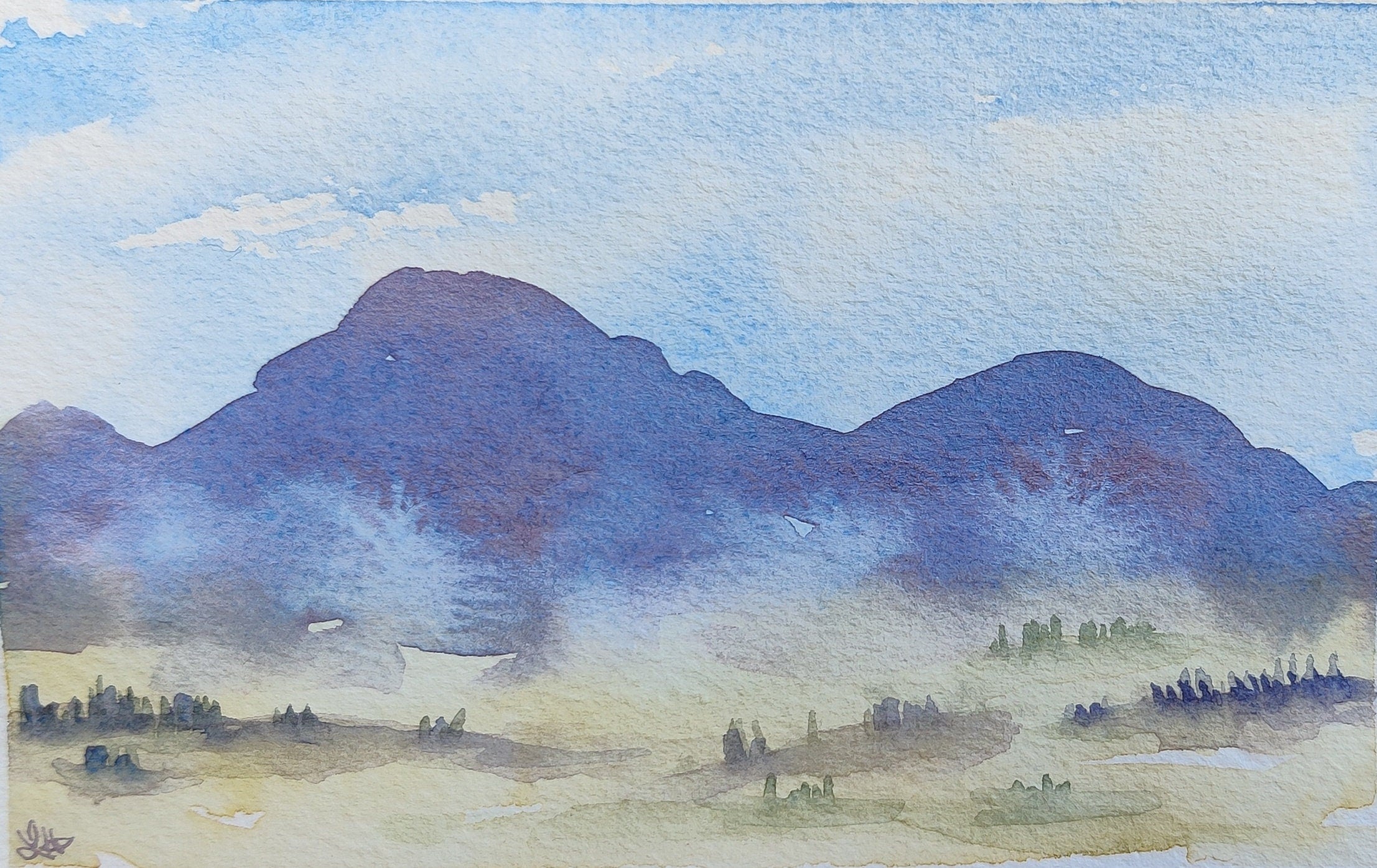 Wind-swept plains crowned with mountains all around... what an amazing sight! Painted on hand-torn 140lb cold press paper, inspired by a plein air trip behind the Front Range in Colorado.