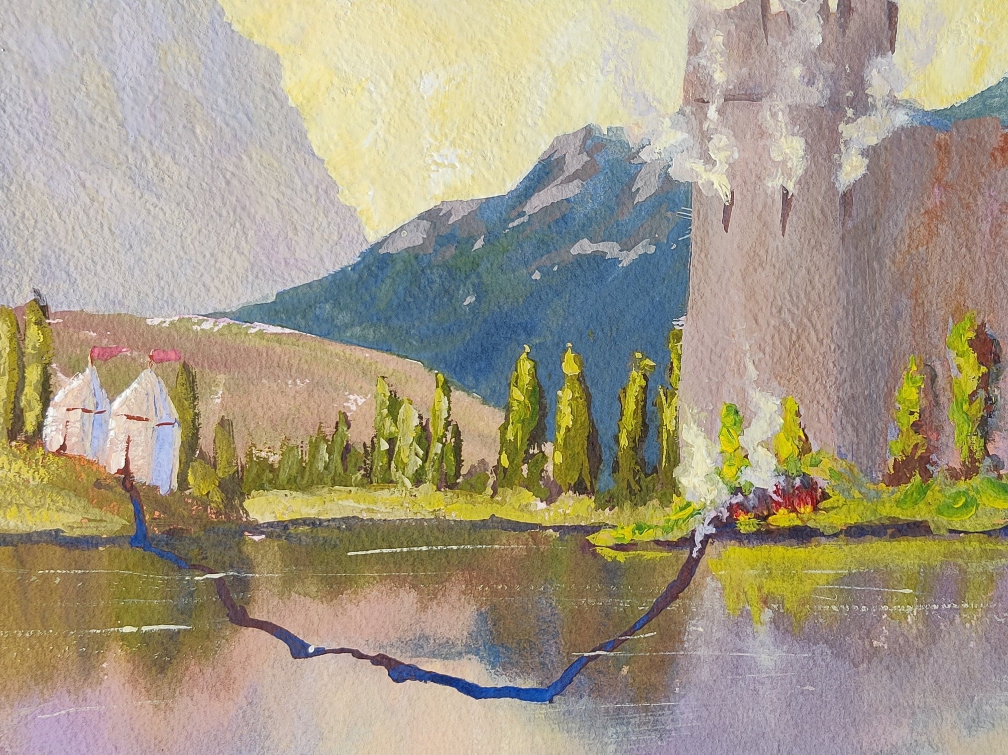 *Please be aware, there are small cracks in 2 places in the thick cliff pigments, only seen if you put your nose to the paper. This is a hazard of thick application of gouache to achieve certain effects and living in a dry area.